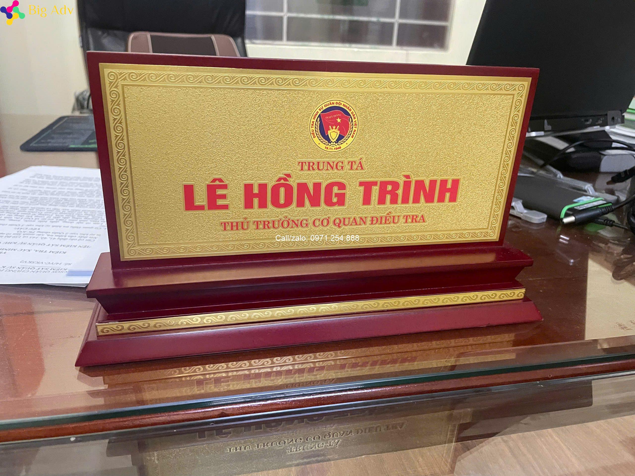 Sản phẩm này thường được dùng cố định cho các vị trí lãnh đạo trong cơ quan tòa án, vừa giúp khẳng định đẳng cấp, vị thế của người dùng, đồng thời cũng như nâng cao tính thẩm mỹ cho tấm biển chức danh. Là sự nên duyên giữa 2 chất liệu gỗ và đồng, thiết kế 1 mặt hoặc 2 mặt dễ dàng quan sát. Biển được làm từ gỗ và đồng ăn mòn với đế làm bằng gỗ, cho sản phẩm hình thức cực kỳ lịch sử và sang trọng với bề mặt biển sáng bóng lau chùi vệ sinh dễ dàng và độ bền vượt trội lên đến nhiều năm.